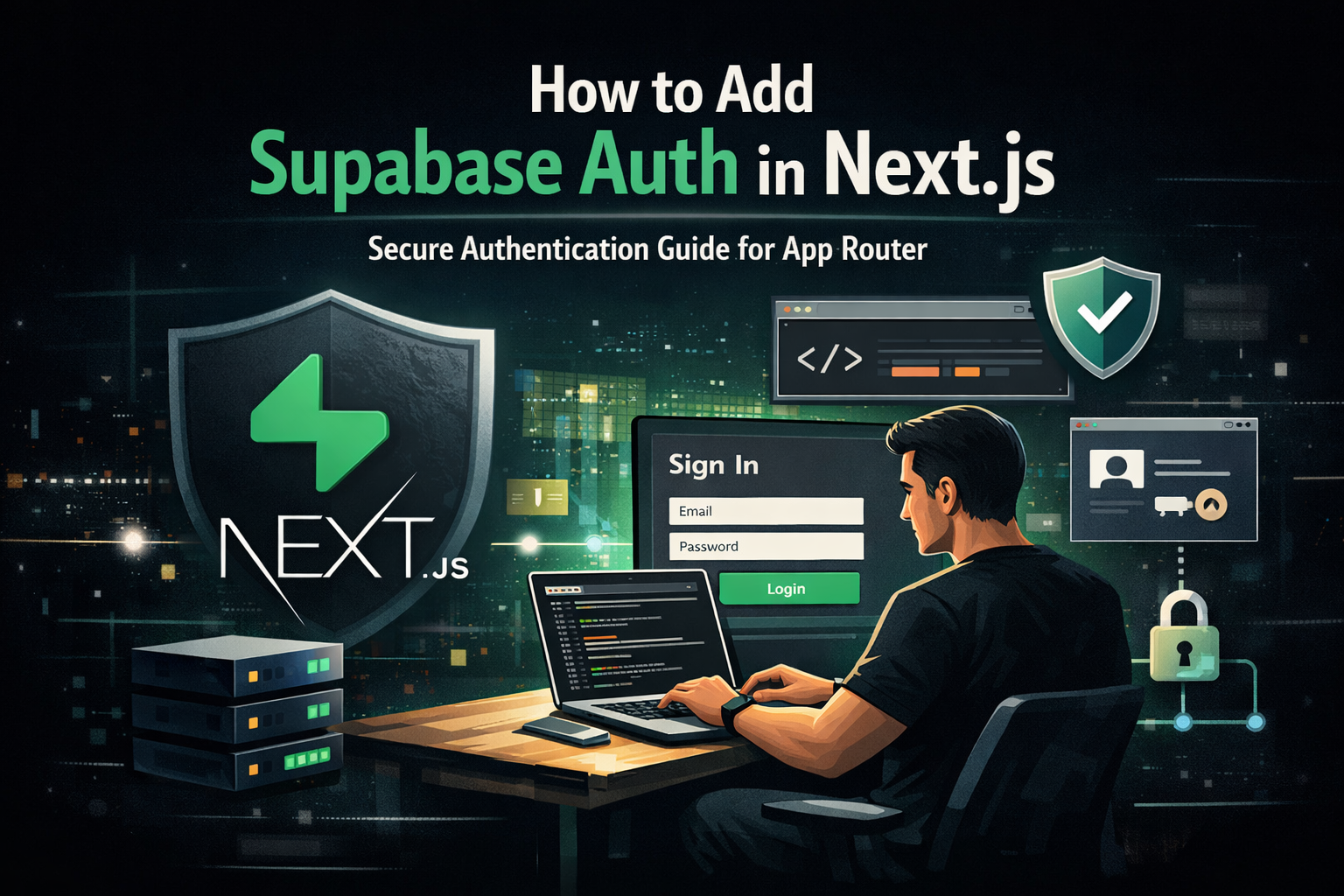 Learn how to integrate Supabase Authentication in a Next.js App Router project. Step-by-step guide covering client setup, server components, middleware protection, and production best practices.