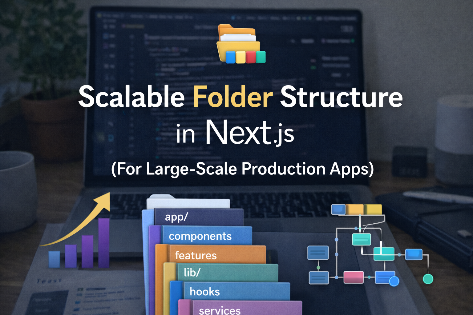 Learn how to structure large-scale Next.js applications using a scalable folder architecture, feature-based organization, reusable components, and clean separation of logic for production apps.