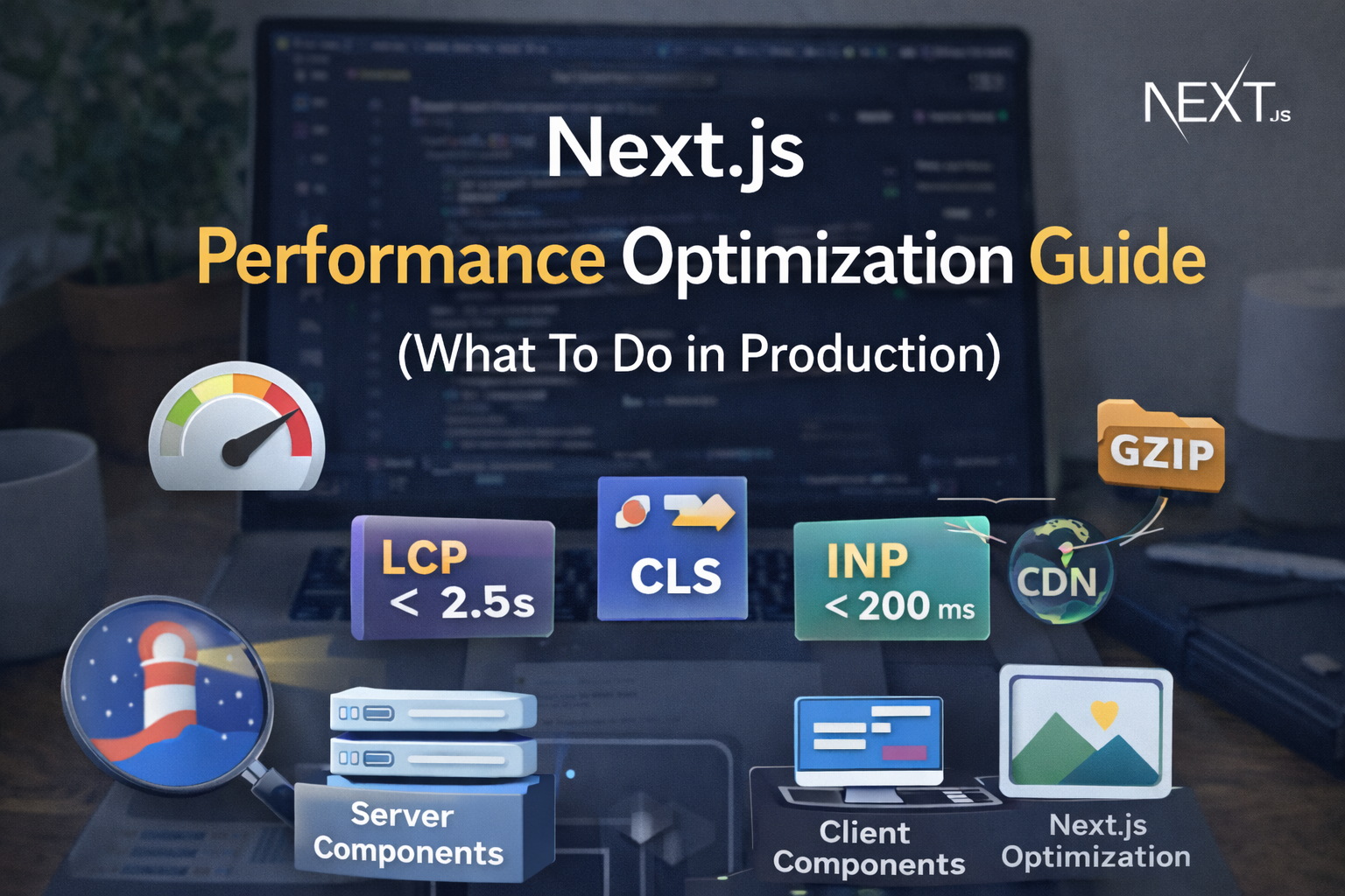 Learn how to optimize performance in Next.js for production apps using server components, caching, image optimization, dynamic imports, and Core Web Vitals best practices.