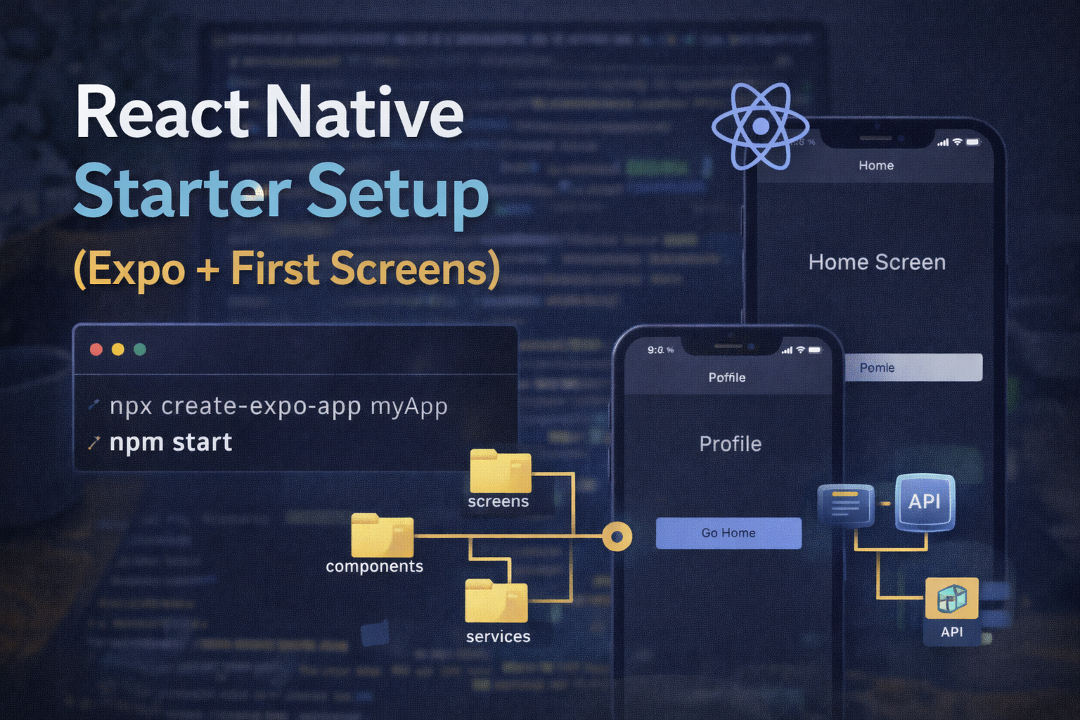 Learn how to start a React Native app using Expo with basic folder structure, navigation setup, reusable components, and API integration using practical code examples.